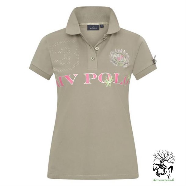 Sommerlig damepolo med flotte print foran og bagpå fra sommerkollektionen Favouritas by HV POLO. Poloen er lavet af en behagelig og elastisk kombination af bomuld og elastan.